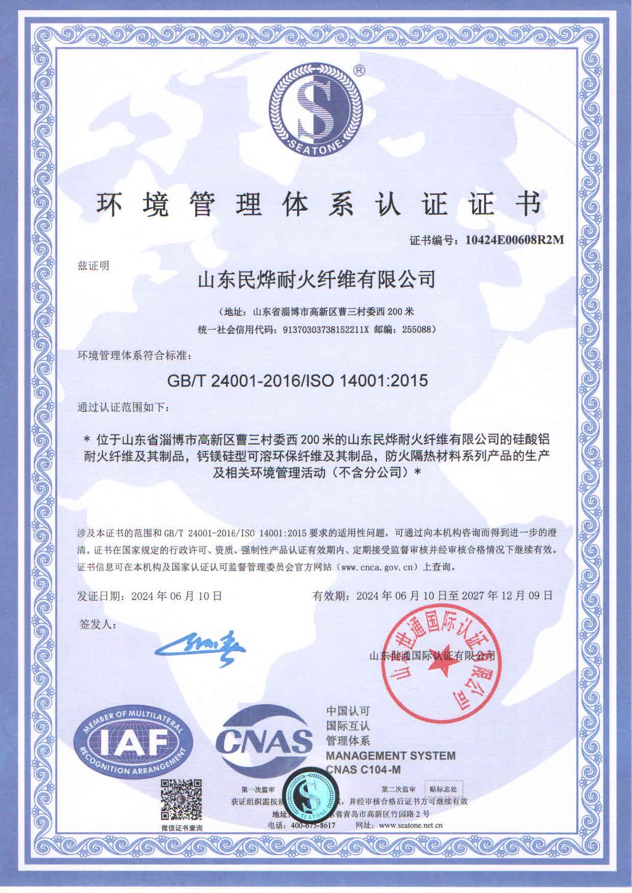 2024年環境體系認證證書