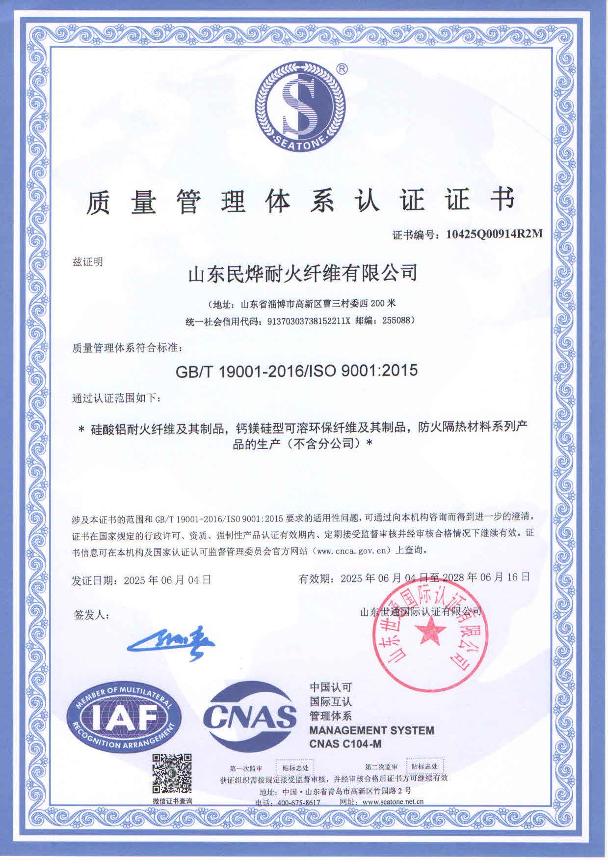 2025年質量體系認證證書
